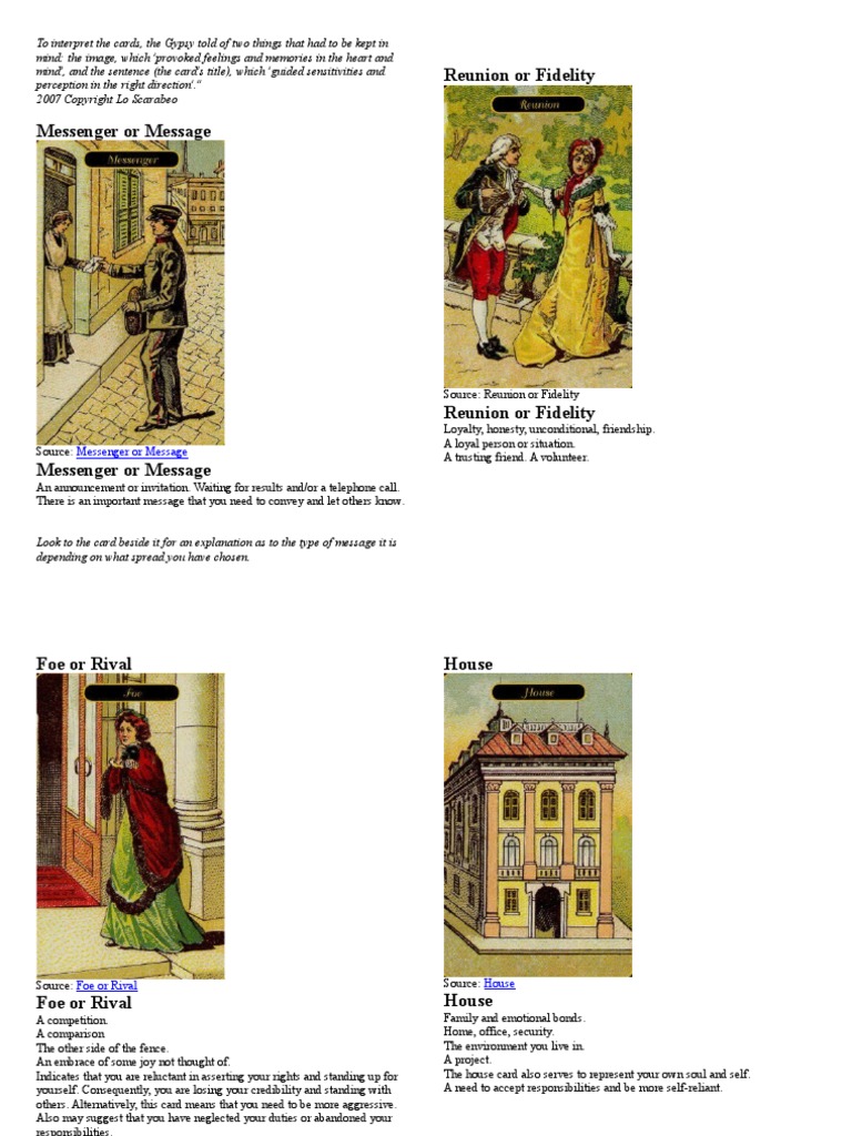 Gypsy Oracle Cards Cards And Meaning Esoteric And Divinatory Tarot
